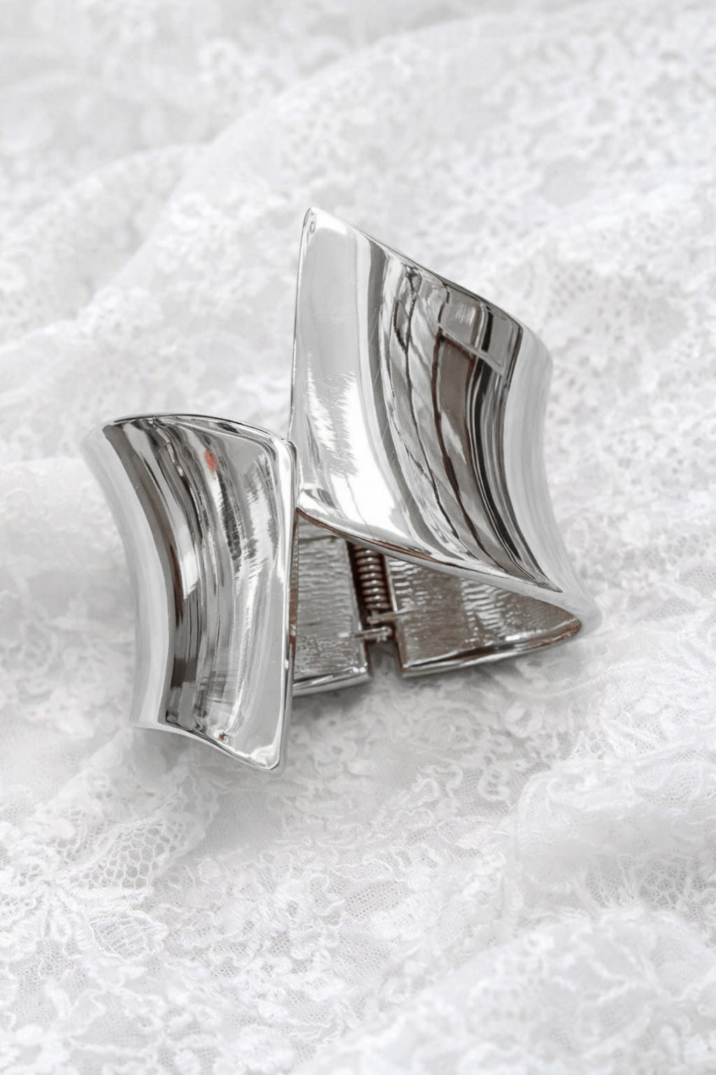 Forma jest miękka, lekko falująca, z pięknym połyskiem, który łapie światło przy każdym ruchu dłoni. Wygląda mocno, ale kobieco – pasuje zarówno do prostych stylizacji, jak i do bardziej eleganckich zestawów.