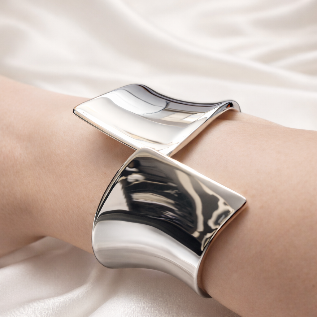 To jest bransoletka, która od razu robi wrażenie. Szeroka, solidna, wyraźna – taka, którą naprawdę czuć na ręce. Ma swoją wagę i charakter, nie udaje delikatnej ozdoby.