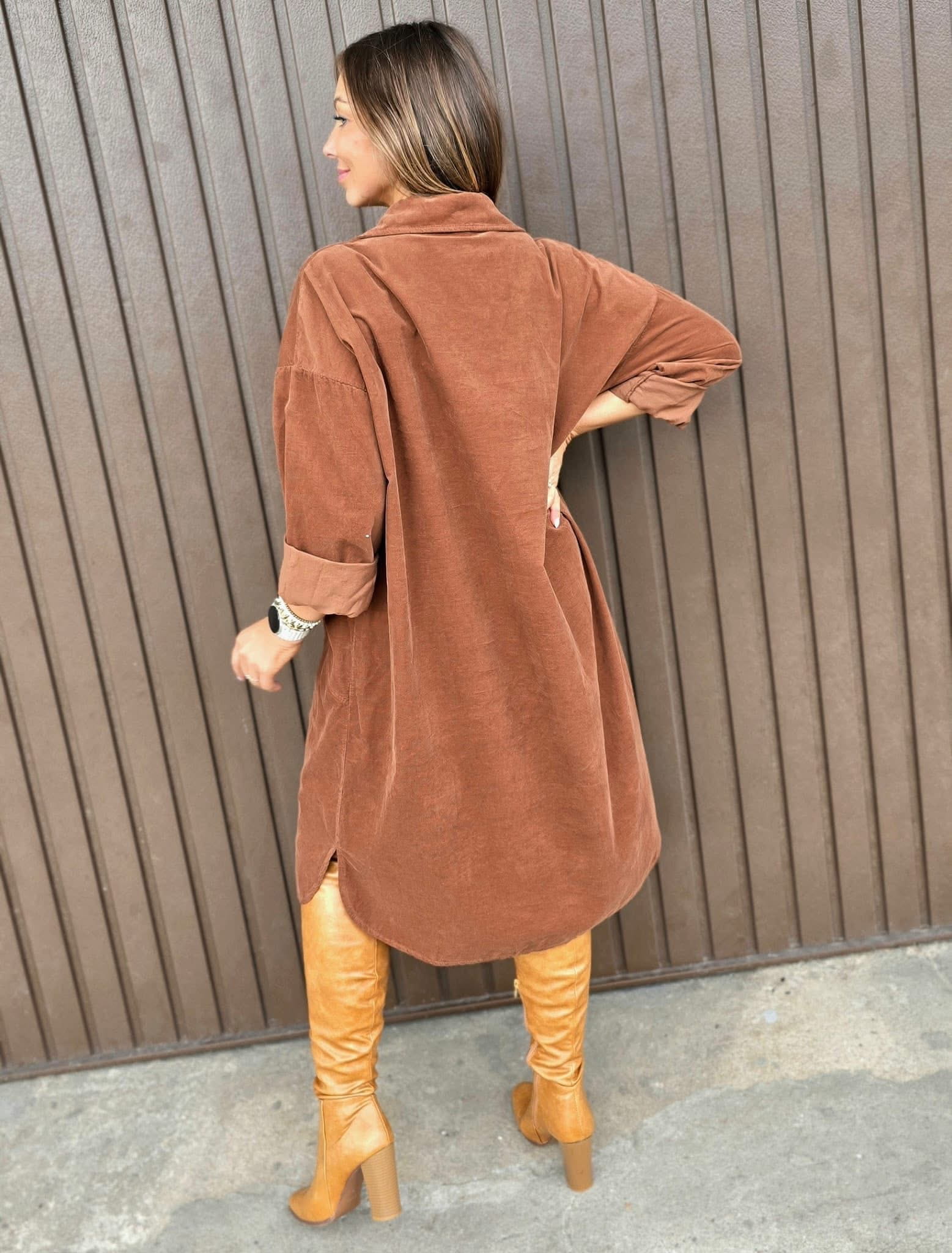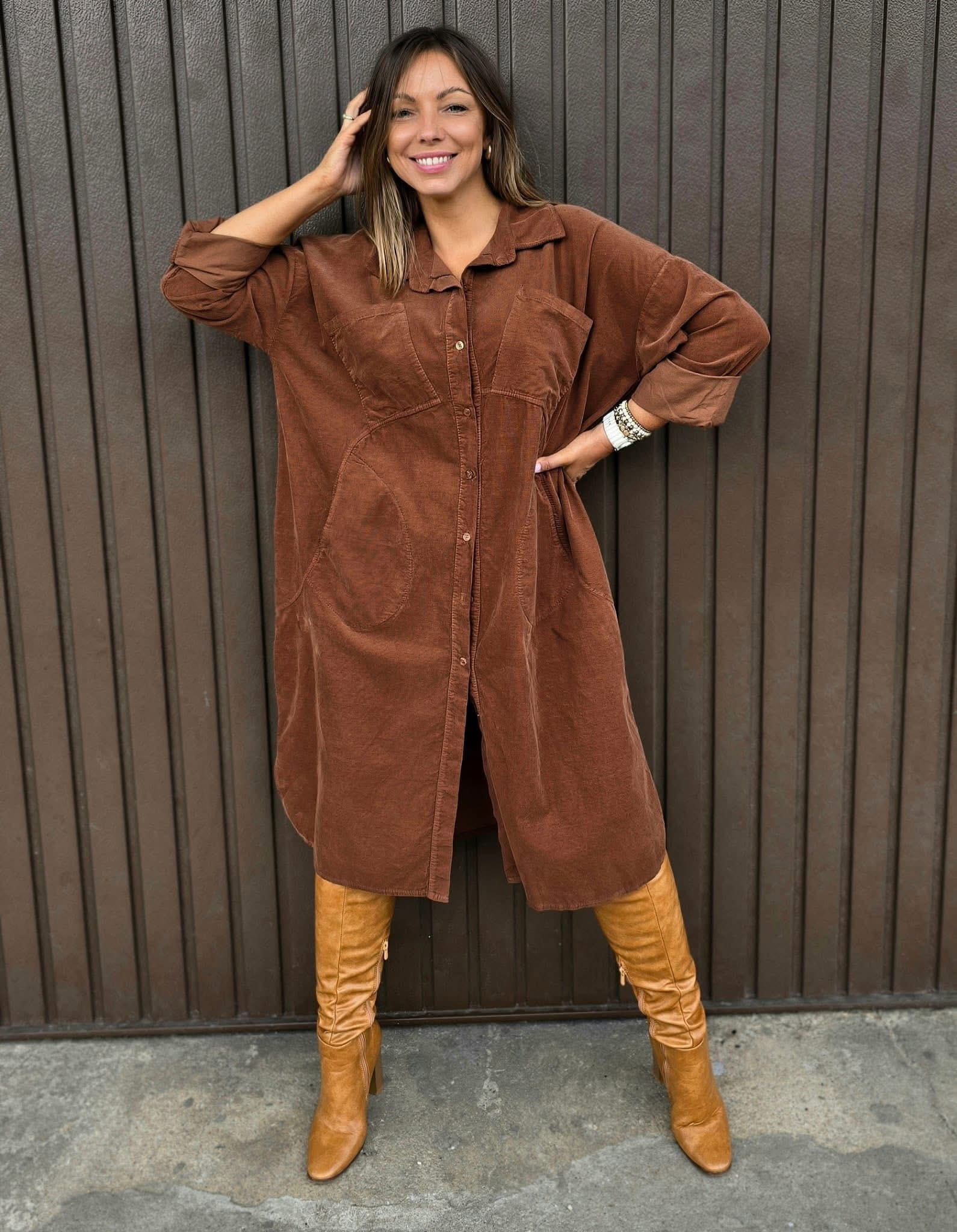 To jest właśnie ta sukienka, którą zakładasz i od razu czujesz miękkość i wygodę. Uszyta z 100% bawełny, z mięciutkiego sztruksu – aż chce się w niej chodzić cały dzień. Milutka w dotyku, przewiewna i przyjazna dla skóry.
