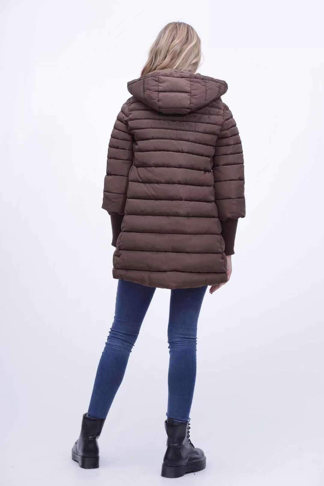 Ciepła kurtka plus size (42-52) ze sciągaczami DESIREE brązowa