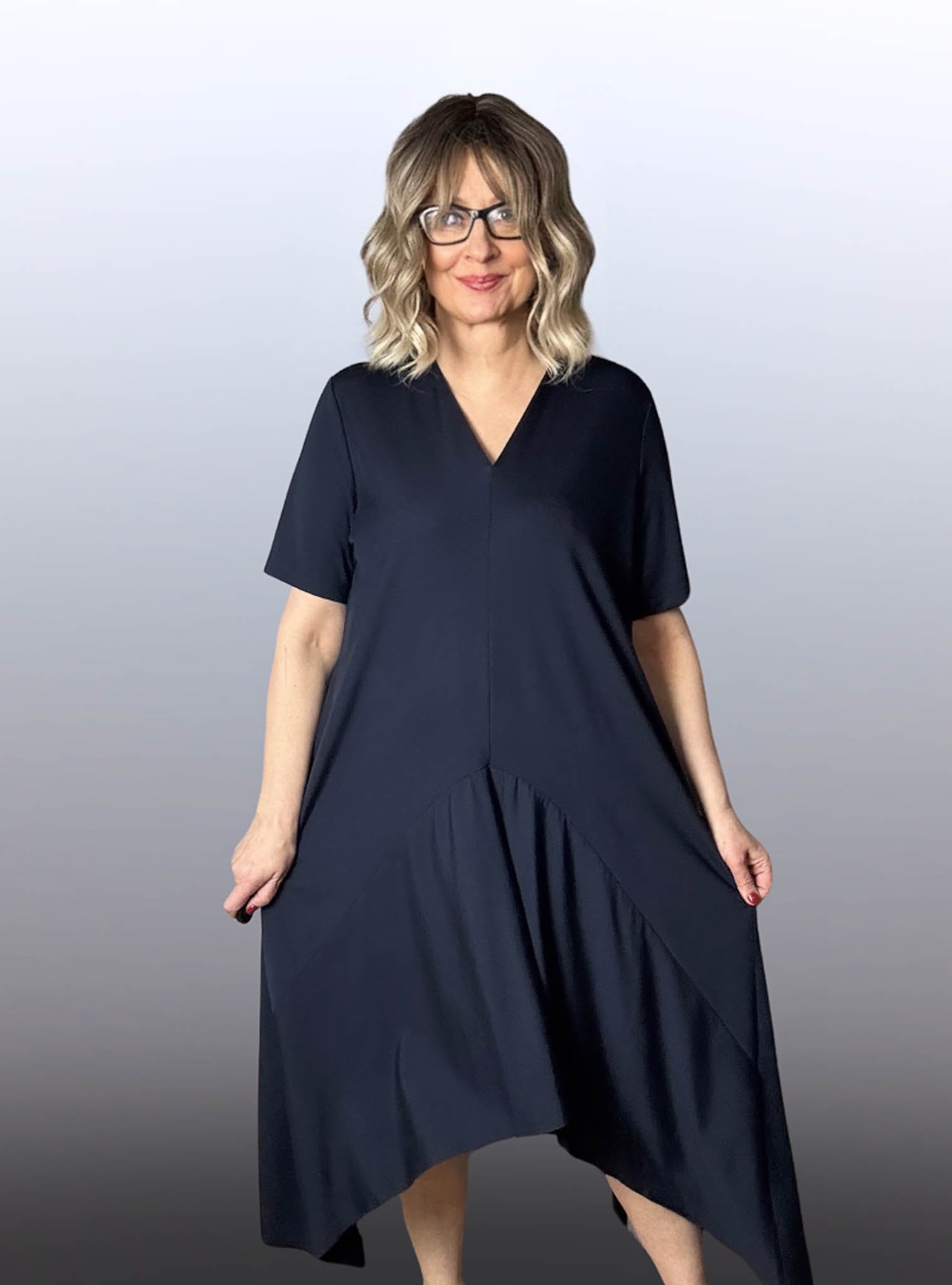 Uszyta z elastycznego, ale eleganckiego materiału – miękko dopasowuje się do ciała, nie opinając, tylko modelując.