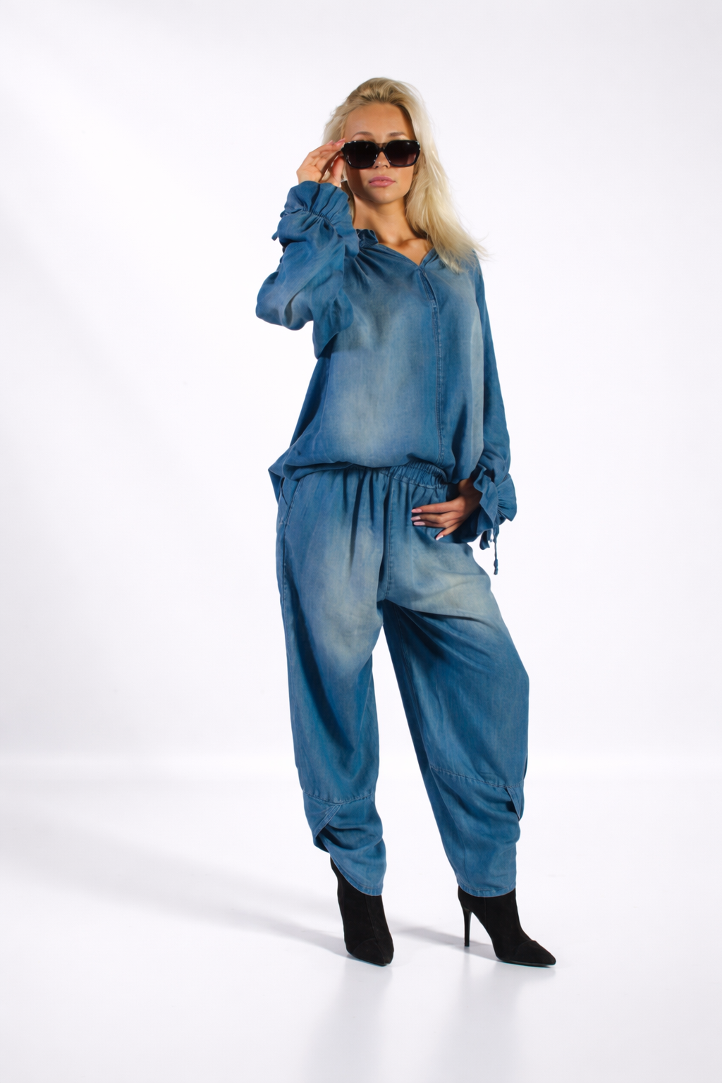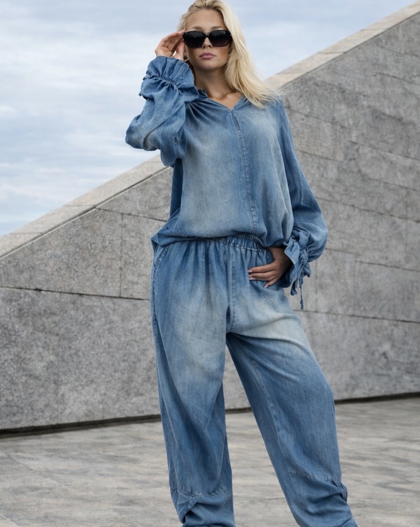 Jeansowy komplet oversize tunika i spodnie ZOCCO z wadą