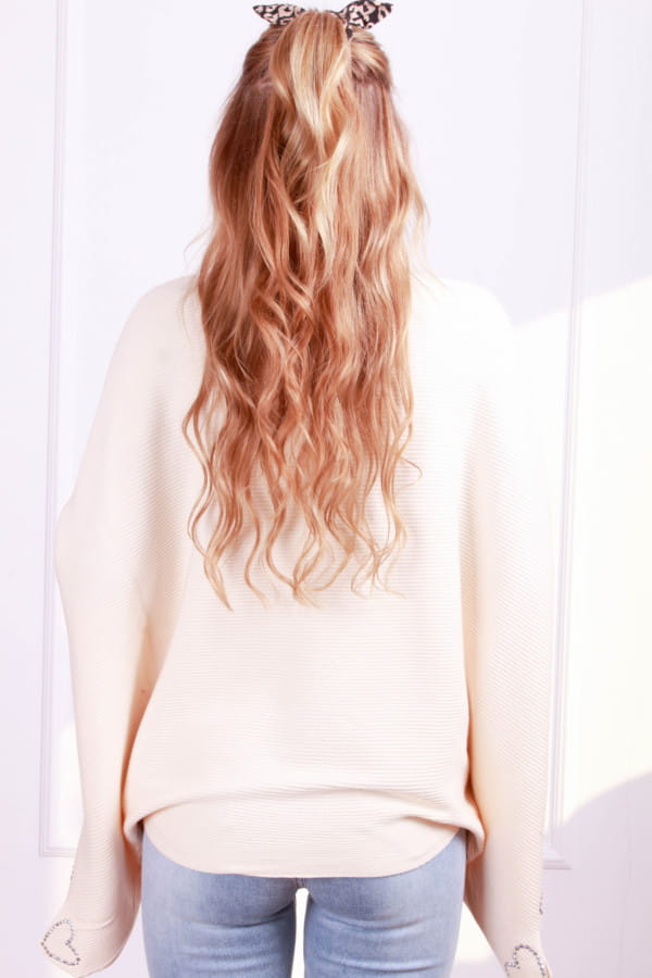 Luksusowy sweterek nietoperz LOVE kremowy