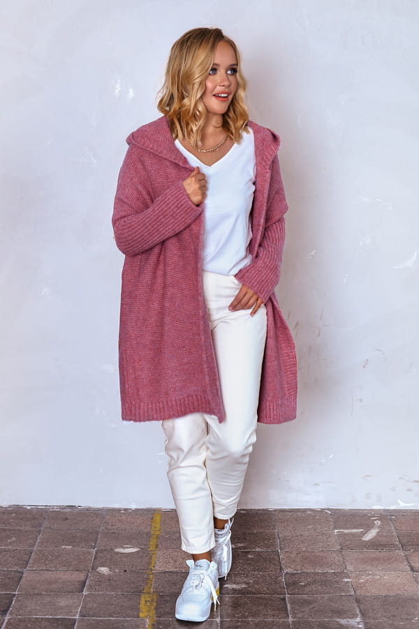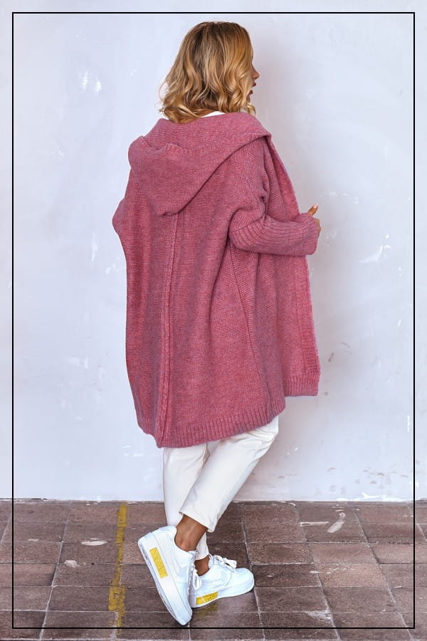 Kardigan EMMA ma oversizowy krój, który sprytnie tuszuje dodatkowe kilogramy. Kardigan doskonale będzie prezentował się zarówno w eleganckich, jak i codziennych stylizacjach. Niezapinany, wygodny sweter o prostym kroju to must have w szafie każdej kobiety. Sweter doskonale będzie prezentował się w pracy, na spacerze czy zestawiony z elegancką koszulą. Wygląda świetnie zarówno z jeansami jak eleganckimi rurkami. Jego materiał jest miękki, dobrze dopasowuje się do sylwetki i nie krępuje ruchów. Kaptur ochroni przed chłodem, a także dodaje sportowego stylu. W wiosenne, rześkie dni posłuży jako alternatywa dla lekkich kurtek i wygodnych bluz. Skład materiału: 55% akryl, 18% wełna, 10% poliester, 10% elastan, 7% poliamid. Produkt został uszyty w Polsce, co jest gwarancją świetnej jakości. Materiał jest gruby, mięsisty i milutki w dotyku. Producent zaleca prać ręcznie w temperaturze do 30°C.
