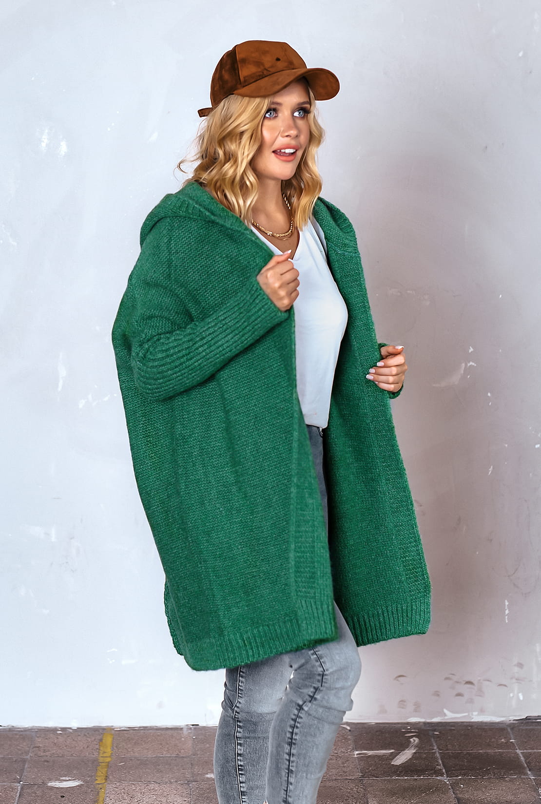 Oversizowy kardigan sweter z wełną EMMA ciemna zieleń
