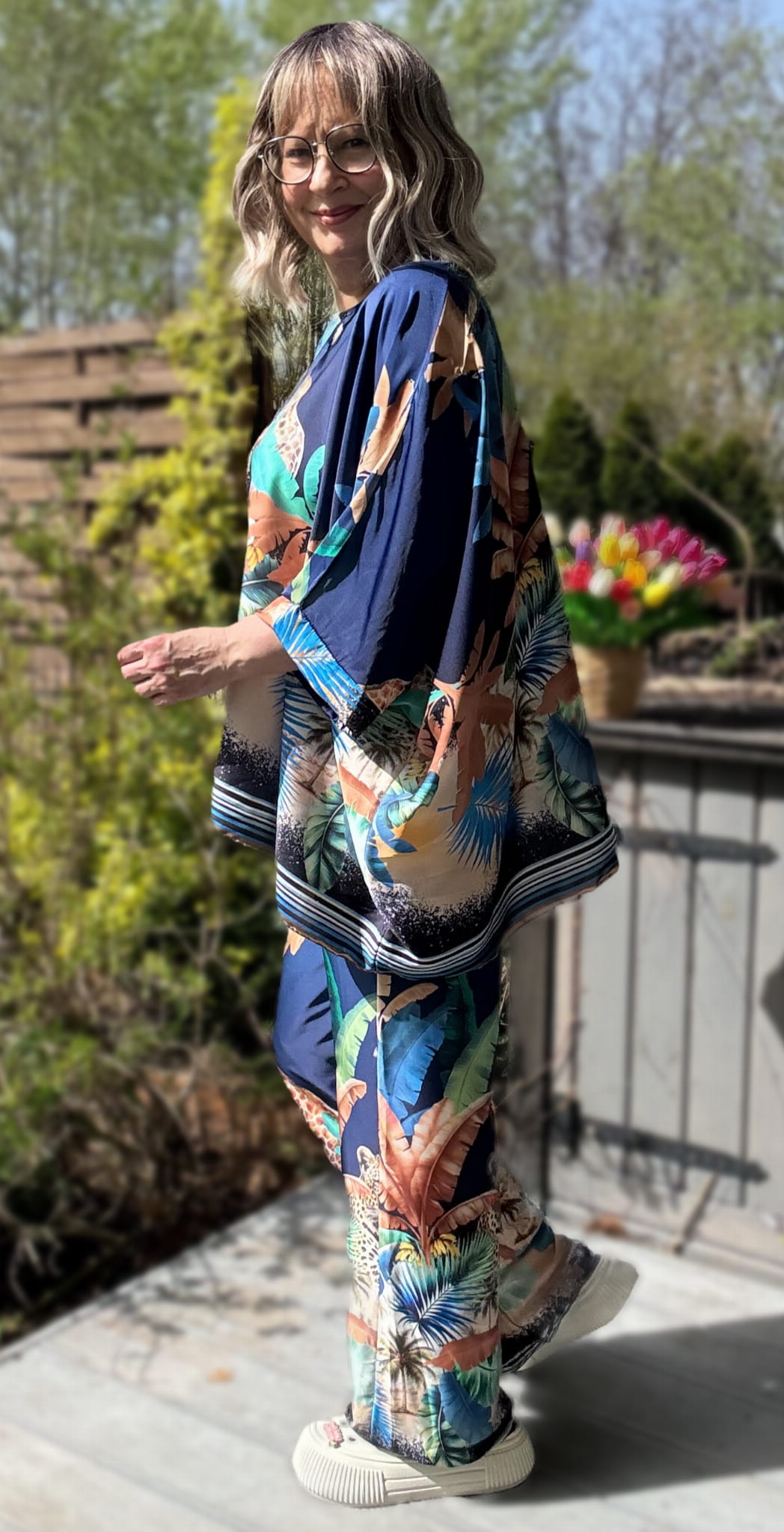A wzór? No powiedzmy sobie szczerze – trudno o bardziej efektowny miks dżunglowych klimatów z miejskim luzem. Tygrys, palma, liście – i Ty w tym wszystkim. Gotowa na lato, gotowa na zachwyty.