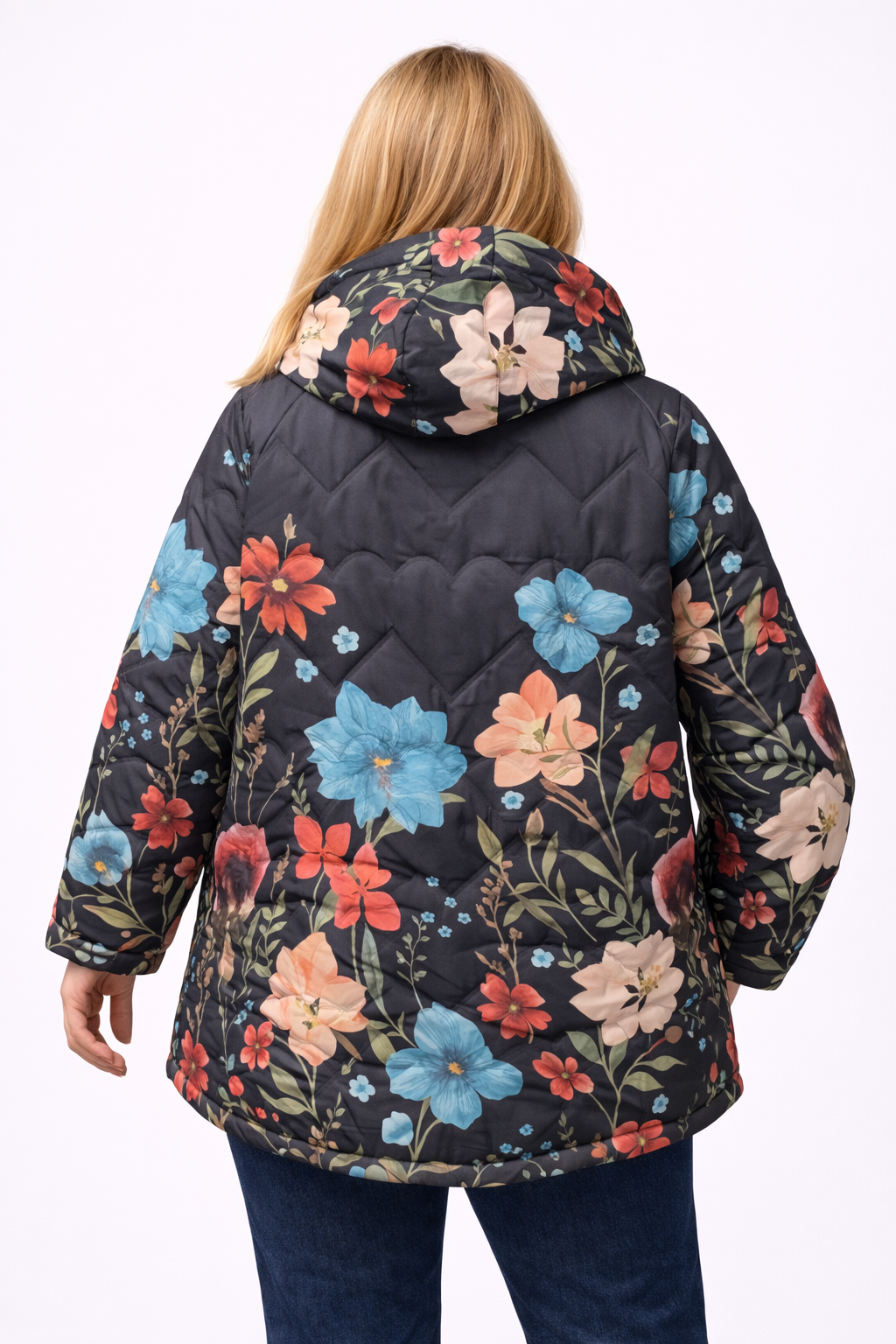 Tył delikatnie wydłużany — dzięki temu kurtka ładnie się układa i daje poczucie luzu.