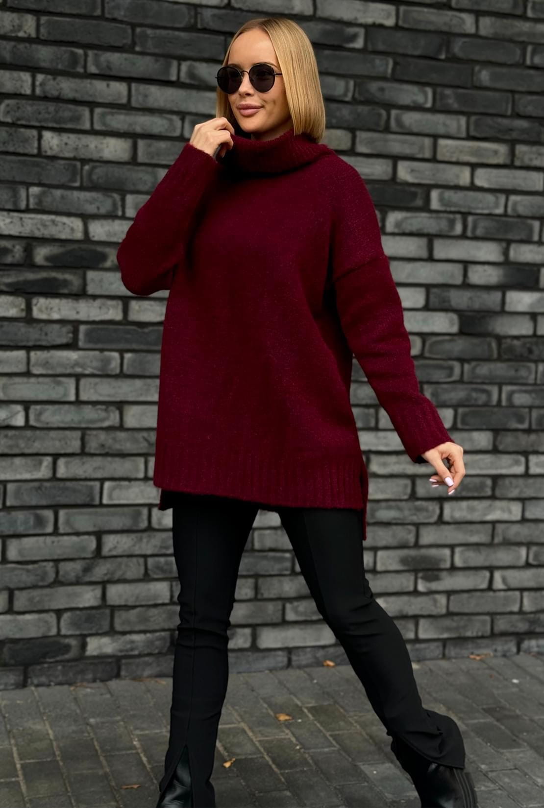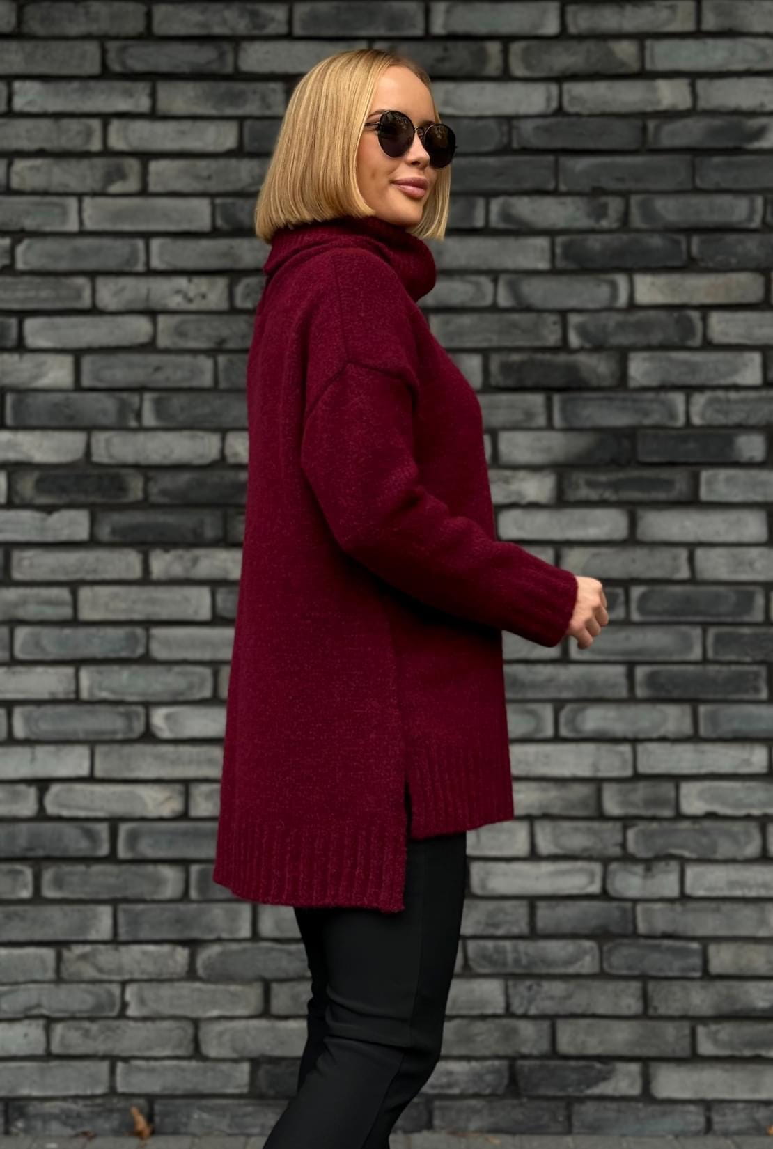 Polski oversizowy sweter z golfem ANNA burgund