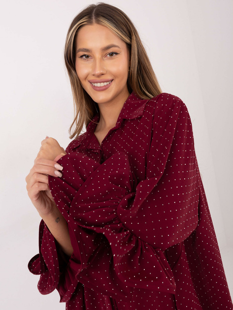 Satynowa koszula plus size MIGOTKA bordowa