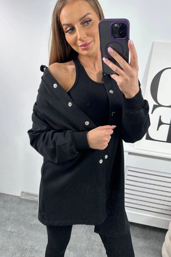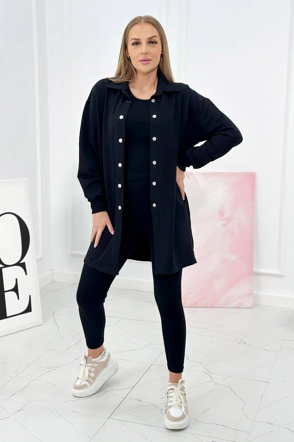 Trzyczęściowy komplet bluza top i leginsy czarny