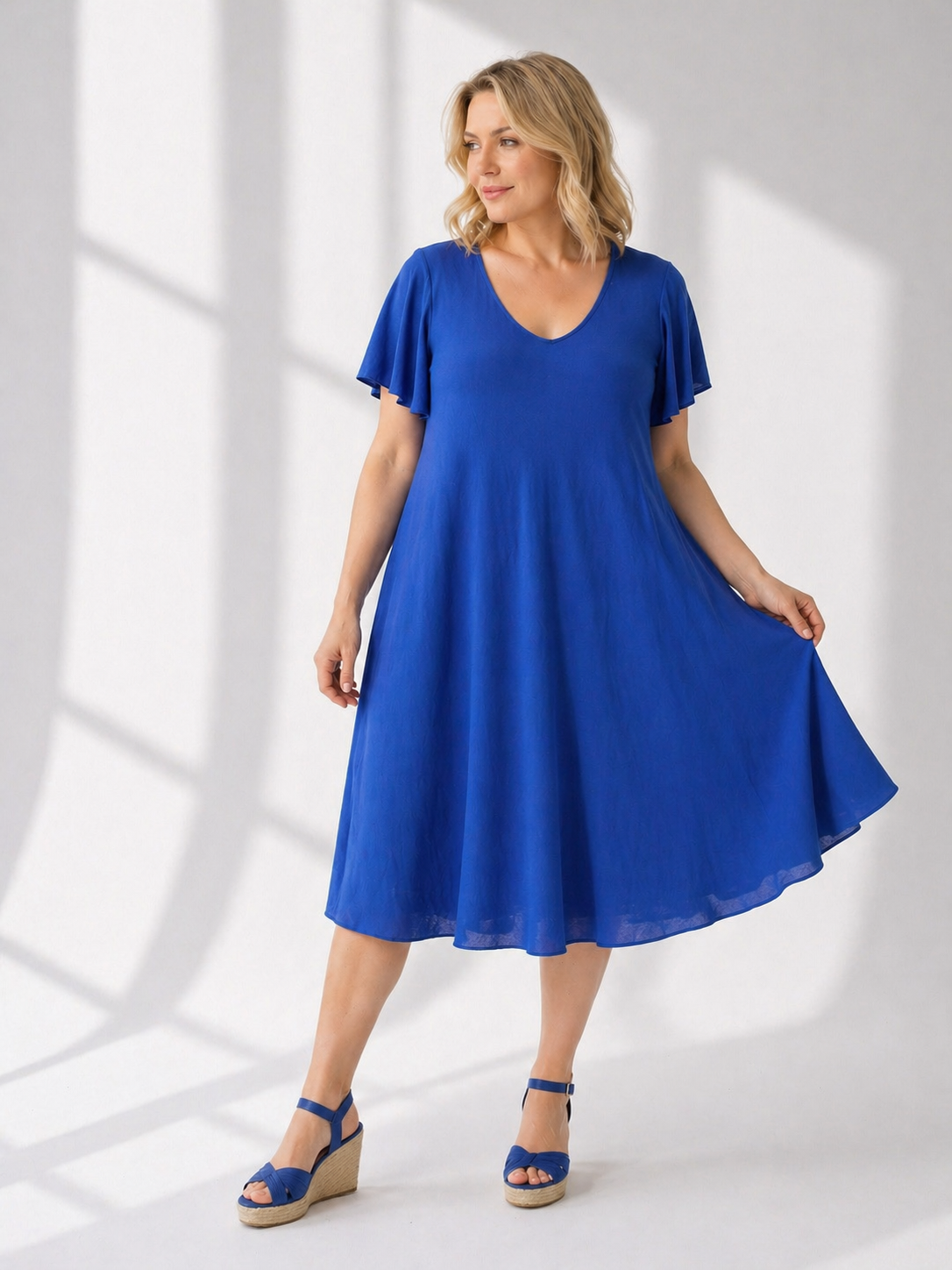 Materiał? Lekki, przewiewny i niesamowicie przyjemny w dotyku. W upale nie czujesz gorąca – sukienka delikatnie muska skórę jak chłodny wiaterek.